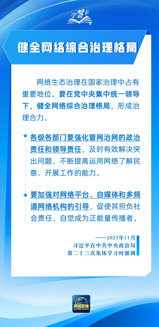 近日,习近平总书记在中共中央政治局第二十三次集体学习时发表重要讲话,对网络生态治理这一网络强国建设的重要任务作出战略部署、提出明确要求。
