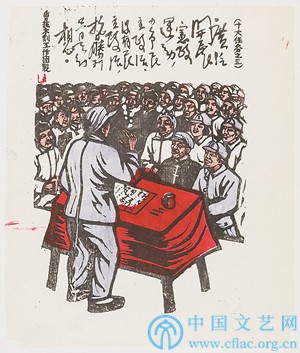 套色木刻宣传画《抗战十大任务之三》 邹雅
