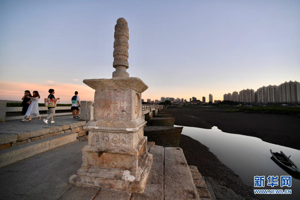 游人在傍晚时分游览泉州洛阳桥(7月7日摄)。新华社记者 姜克红 摄