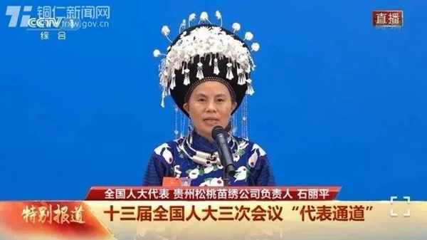 农历牛年除夕,石丽平作为2020年全国脱贫攻坚奖获奖者走上央视2021年春晚特别节目《向祖国报告》,向全国观众描绘了通过苗绣产业带动乡村增收致富的美好愿景。