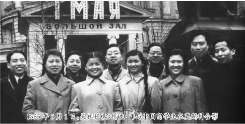1955年5月1日,吴祖强(后排左一)与中国留学生在莫斯科合影