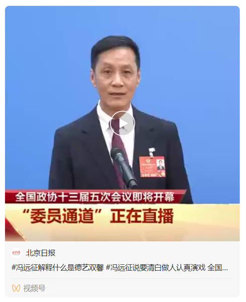 冯远征委员的话无疑对年轻的文艺工作者提出了新的要求。当天,#冯远征解释什么是德艺双馨#话题也一度登上热搜。