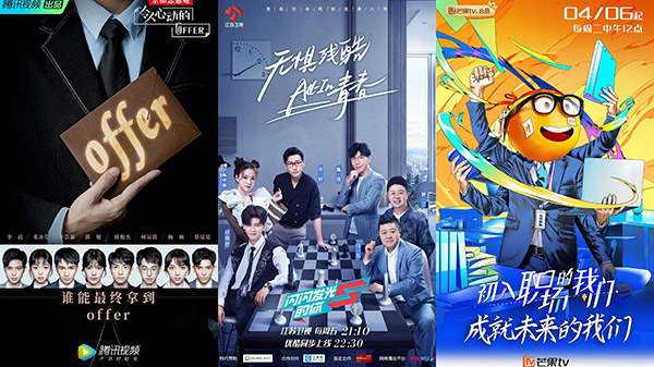 随后,各大卫视和视频平台均相继推出职场观察类节目,如芒果TV的《初入职场的我们》、江苏卫视《闪闪发光的你》等,前者邀请实习生到南、北两家不同行业的公司分别与叱咤商界的女企业家董明珠、多次饰演“霸道总裁”角色的演员张翰零距离工作学习;后者则聚焦到金融行业30名海内外求职者,最终筛选八位在职场中学习、成长争夺录取机会。