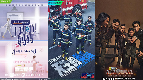 《上班啦!妈妈第一季》(左)、《一往无前的蓝》(中)、《我们的滚烫人生》