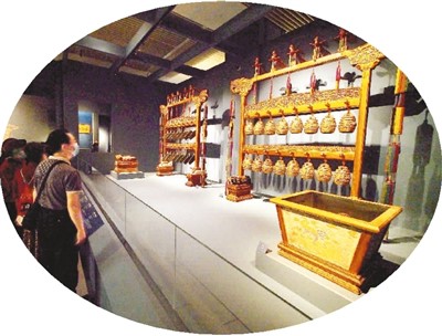 观众欣赏清代“中和韶乐”乐器。杜建坡摄