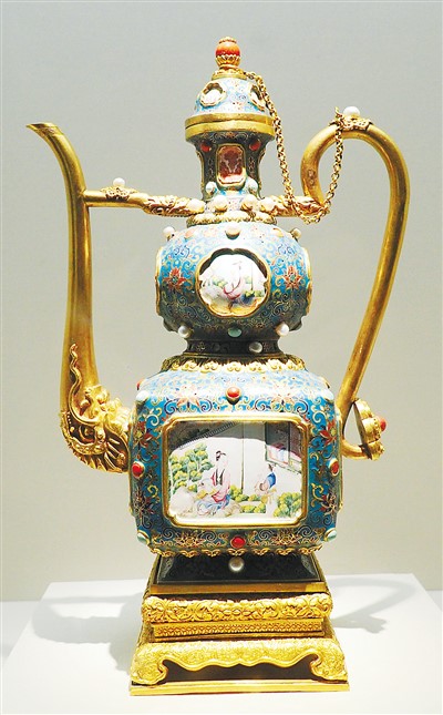 清乾隆金胎珐琅人物图执壶。杜建坡摄