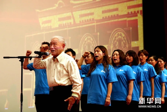 83岁的牛犇庄严宣誓,加入中国共产党。图片来源:新华网
