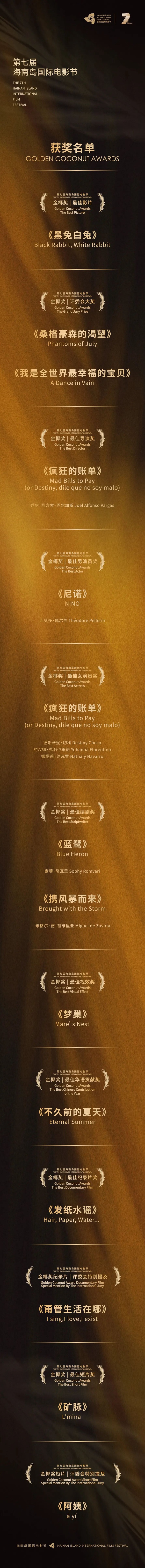 第七届海南岛国际电影节“金椰奖”获奖名单公布