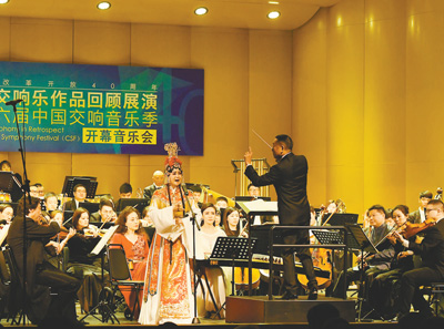 图为开幕音乐会上,胡咏言指挥演奏的交响幻想曲《霸王别姬》。张大勇摄