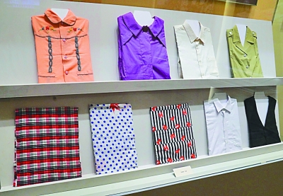 “屹立东方”展区,十余件“的确良”衬衣摆放在玻璃展柜中,有格子的、条纹的、斑点的,花色各样。