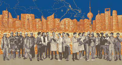 璀璨长三角——贯彻落实长三角区域一体化发展国家战略(版画) 孔国桥 鲁利锋 王克景