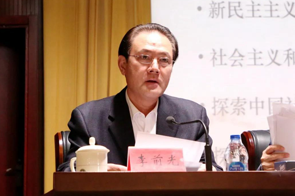 4月9日,中国文联在中国文艺家之家举办中国文联党史学习教育专题辅导讲座。图为中国文联党组成员、副主席李前光主持讲座。