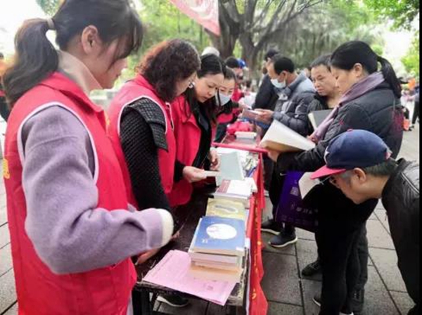 福建省文联开展“送文化进社区”学雷锋志愿服务活动,组织志愿服务队为社区群众送去各类文学书籍300多册,并与他们交流读书心得。