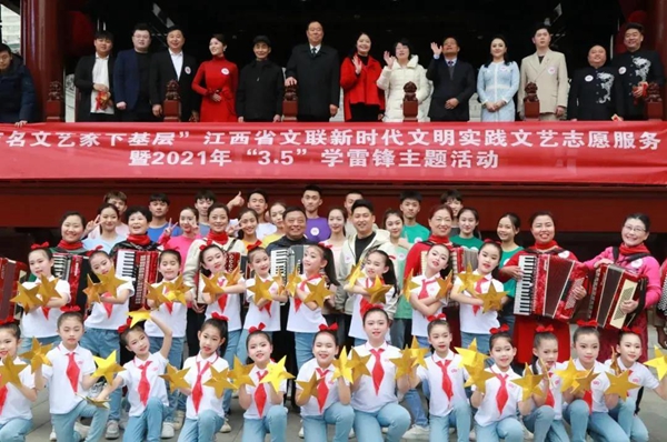 江西省文联参与主办“万名文艺家下基层”新时代文明实践文艺志愿服务暨2021年“3?5”学雷锋主题活动,开展了《学习雷锋好榜样》快闪、《文艺“颂”模范》慰问先进人物、“学雷锋主题”优秀文艺作品展播、专题公益书法讲座、全家福拍摄等一系列活动。此次活动旨在推进学雷锋文艺志愿服务制度化常态化,不断满足人民群众对美好生活的新期待。