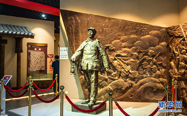 这是在苟坝会议陈列馆拍摄的毛泽东身披外套、提着马灯疾行的雕塑(2019年7月5日摄)。新华社记者 陶亮 摄