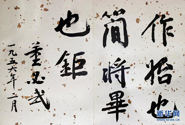 在中共一大纪念馆内拍摄的董必武的题词(6月1日摄)。新华社记者 刘颖 摄