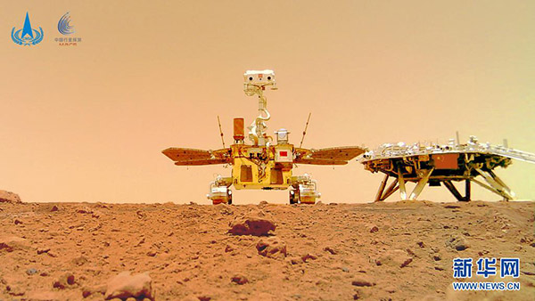 这是6月11日公布的由祝融号火星车拍摄的“着巡合影”图。新华社发(国家航天局供图)