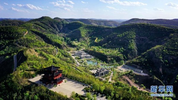 位于陕西延安市吴起县的退耕还林森林公园(2019年5月11日摄,无人机照片)。新华社记者 陶明 摄