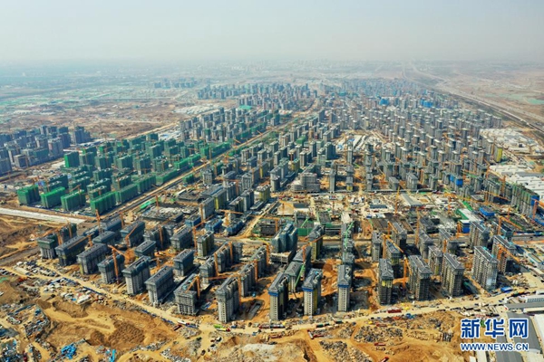 4月8日拍摄的河北雄安新区容东片区安置房项目建设现场(无人机照片)。新华社记者 牟宇 摄