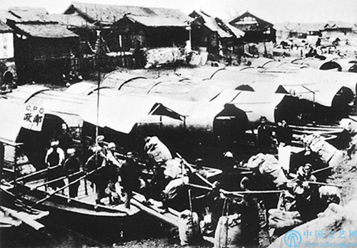 用船只运送邮件的场景 杭嘉湖水网 20世纪20年代 嘉兴邮电博物馆提供
