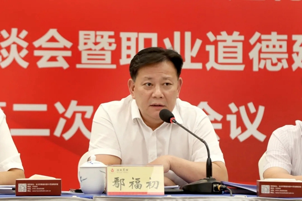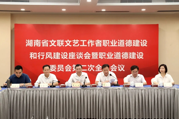 9月7日上午,湖南省文联文艺工作者职业道德建设和行风建设座谈会暨职业道德建设委员会第二次全体会议在长沙召开。省文联党组书记、副主席夏义生出席会议并讲话。湖南省文联主席、中国书协副主席、湖南省书协主席鄢福初主持会议并讲话。