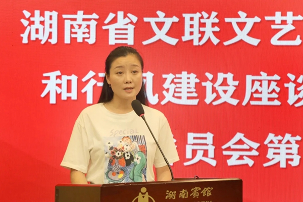 座谈会上,王跃文、杨霞、肖笑波、段江华等4位文艺家代表围绕我省加强文艺工作者职业道德建设、推进文艺界行风建设发言。著名作家王跃文说:“作家和文学工作者要加强政治理论学习,做到人品、文品和职业道德相统一;要坚守艺术理想,始终坚持以人民为中心的创作导向;要在书写文学作品的同时,书写自身的品格道德。”第四届全国中青年德艺双馨文艺工作者、国家一级演员杨霞说:“行得正,才能走得远。学艺先修德,演戏先做人。德,是文艺工作者立身处世之根。艺,是文艺工作者成就事业之本,德艺双馨应当成为文艺工作者一生的追求。”党的十九大代表、全国劳动模范、国家一级演员肖笑波说:“文艺工作者要树立科学的世界观、人生观、价值观;坚持深入基层,与人民群众同呼吸共患难;坚决抵制市场经济的负面影响和多元文化中的糟粕杂质,始终保持全心全意为人民服务的初心。”全国道德模范、中宣部“时代楷模”、湖南师大美术学院教授段江华说:“我们要坚定立心铸魂的神圣使命、坚持德艺双馨的理想追求、坚守社会表率的责任担当, 对自己负责、对历史负责、对社会负责,保持职业操守、抵御不良风气,共同维护推动湖南文艺的健康发展。”