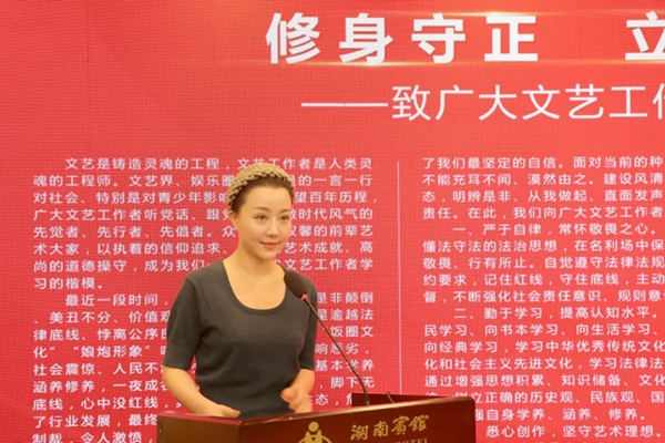 会上,文艺家代表张璇宣读了中国文联《修身守正立心铸魂——致广大文艺工作者倡议书》。