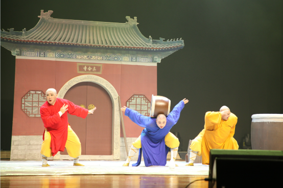 天津市杂技团的滑稽《三个和尚》取材于耳熟能详的传统故事,融入昆曲与顶缸技巧等,引人捧腹的同时发人深思。其创作者、天津市杂技团演员王磊多年来围绕这一题材深挖,10岁时表演少儿舞蹈《三个和尚》获得天津市少儿舞蹈大赛一等奖,之后进入杂技团熟练掌握了顶花坛的技巧。20年后,一次偶然的机会,王磊翻阅到儿时舞蹈剧照,遂决定以此为题材创作杂技顶花坛节目《坛技》,该节目于2008年获得第七届全国杂技比赛文华创作金奖。又一个10年之后迎来第十届中国杂技金菊奖全国滑稽比赛,王磊想用中国故事演绎中国式滑稽,于是以《三个和尚》动画片为创作背景及故事主线进行艺术再创作,凭借滑稽作品《三个和尚》摘得中国杂技金菊奖滑稽节目奖。