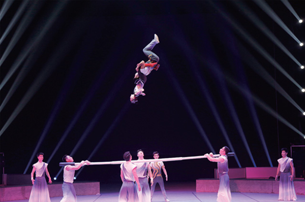 上海杂技团有限公司在海派杂技代表性节目《抖杠》上不断突破自我、改良打磨、化繁为简,创造出全新节目《突破——抖杠》。节目中,演员凭借高超技艺在狭窄的杠上完成连续空翻。情节融入上海城市精神,不断尝试突破、时刻挑战高度。演员们将高难度的“三杠连接”“双翻连翻”“ 后空三周三连翻”等杂技技巧完美地和音乐融合在一起,如蓝色精灵在音符中舞动。该节目荣获第十届中国杂技金菊奖杂技节目奖。