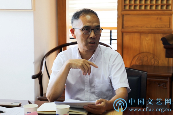 8月26日,中国民协民间文艺工作者职业道德和行风建设座谈会在京召开。图为中国民协副主席、中央民族大学民族学与社会学学院教授林继富发言。中国文艺网 白安琪 摄