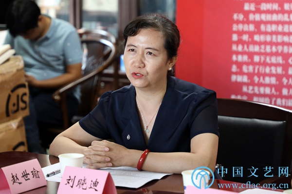 8月26日,中国民协民间文艺工作者职业道德和行风建设座谈会在京召开。图为北京民间文艺家协会理事、东城区民间文艺家协会副主席兼秘书长,省级非遗传承人刘晓迪发言。中国文艺网 白安琪 摄