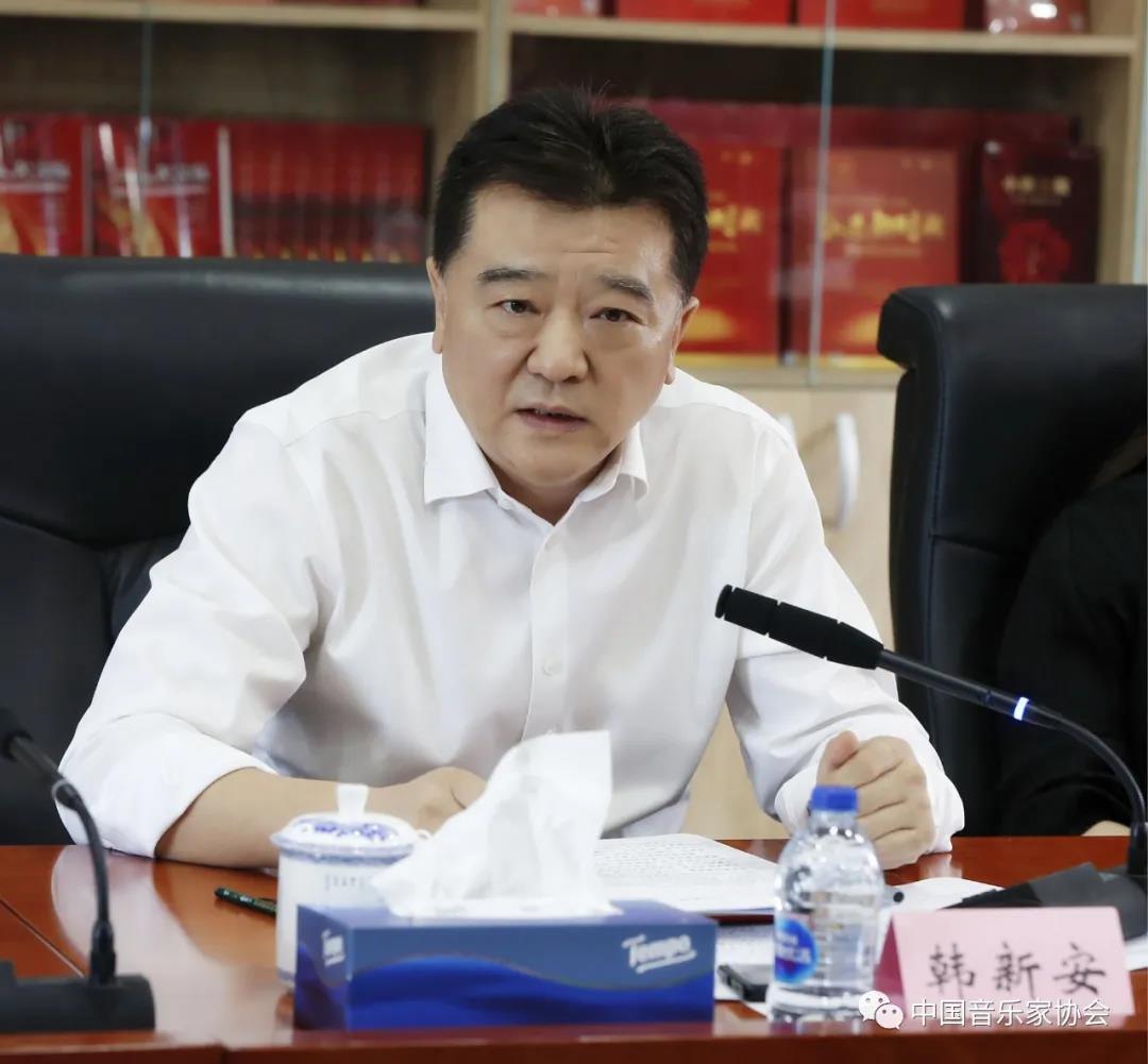 韩新安指出,习近平总书记“七一”重要讲话,鲜明发出了踏上第二个百年奋斗目标新的赶考之路的号令。音乐事业迎来了前所未有的历史发展机遇期,广大音乐工作者要勇立潮头、勇担使命,把个人的艺术追求、艺术理想同国家前途、民族命运紧紧结合在一起,同人民福祉紧紧结合在一起,以建功新时代、奋进新征程的实际行动,着力加强现实题材创作和展演,推出更多反映时代新气象、讴歌人民新创造的文艺精品,努力成为先进文化的践行者、社会风尚的引领者,努力做对国家、对民族、对人民有贡献的音乐工作者,在为祖国、为人民立德立言中书写精彩艺术人生。
