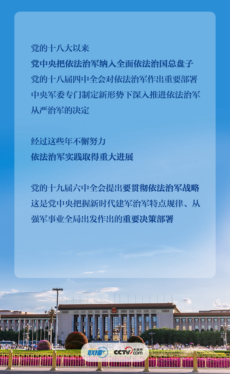 依法治军,是习近平主席发言的关键词之一。他说:“依法治军是我们党建军治军的基本方式,是实现党在新时代的强军目标的必然要求。要贯彻依法治军战略,提高国防和军队建设法治化水平,为推进强军事业提供坚强法治保障。”央视网《联播+》特梳理讲话要点,与您一同学习。