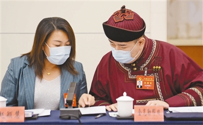 10月17日,在内蒙古代表团全体会议上,代表们认真讨论党的二十大报告。张枨 袁永红摄影报道