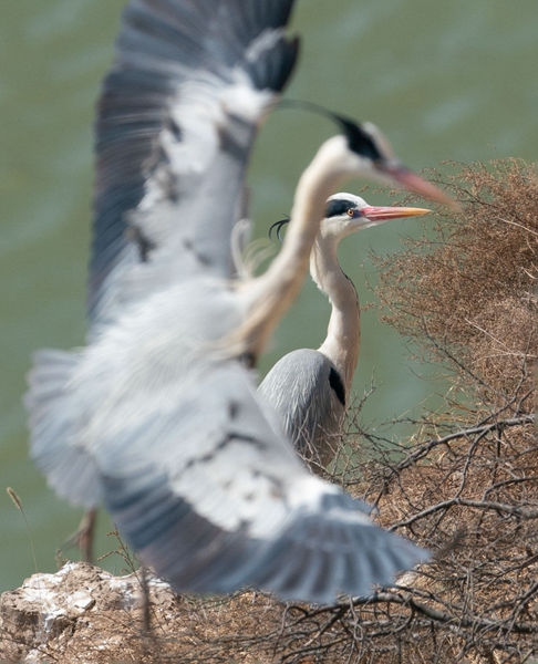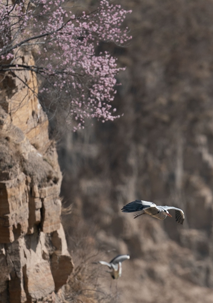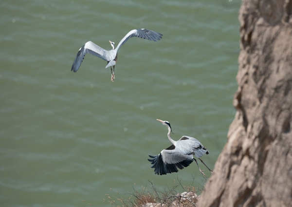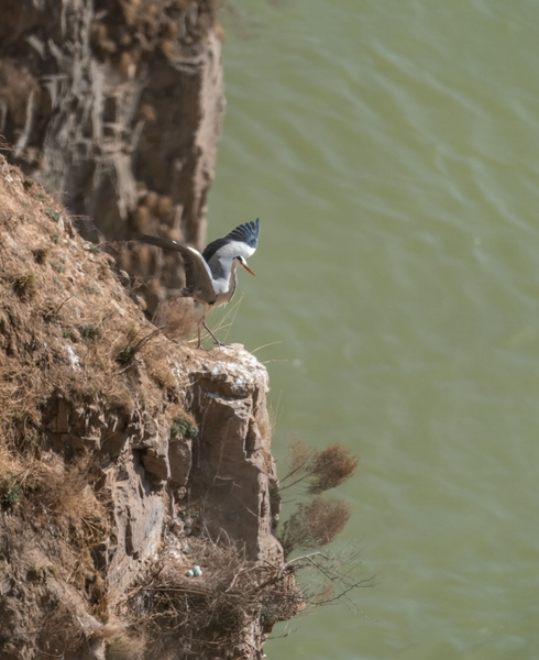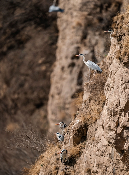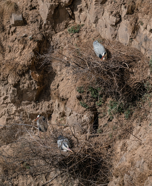 2022年2月-3月,在平陆县曹川镇好汉坡段的黄河悬崖峭壁上,数百只苍鹭正在这里筑巢、产卵、育雏。
