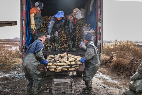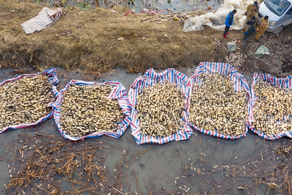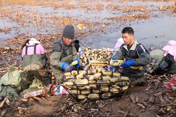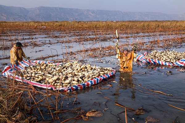 黄河滩涂收莲菜——劳动成果。运城 张满成 摄