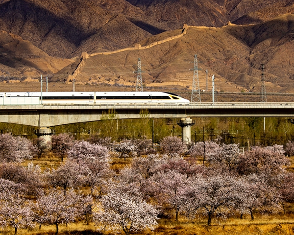 复兴号从明长城边奔弛而过。大同市 任彦龙 摄