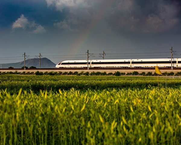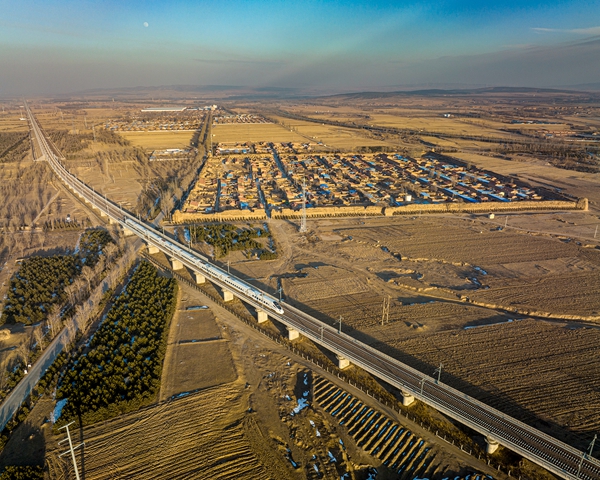 复兴号奔弛在晋北大地上。大同市 任彦龙 摄