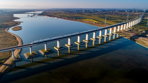 复兴号从大同御河桥奔弛而过。大同市 任彦龙 摄