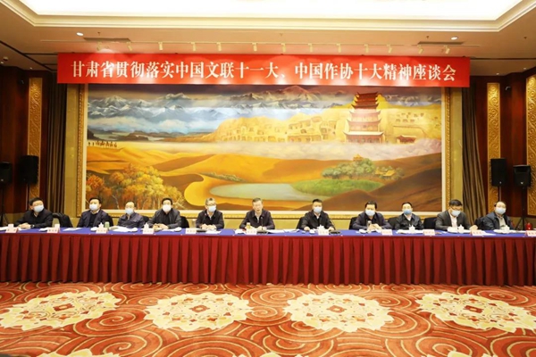 12月22日下午,甘肃省委宣传部、甘肃省文联在兰州召开甘肃省贯彻落实中国文联第十一次全国代表大会、中国作协第十次全国代表大会精神座谈会。
