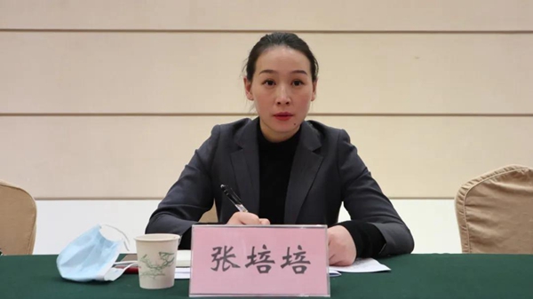 图为兵团戏剧家协会副主席、青年演员张培培交流发言。