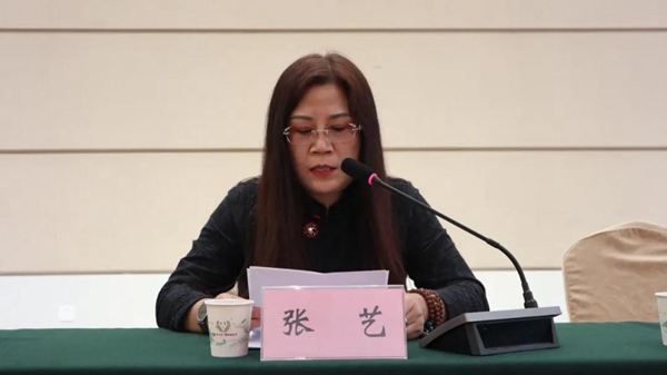 图为兵团舞蹈家协会主席、兵团歌舞剧团团长蒋玫交流发言。