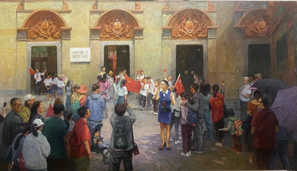 当前,全国各地正在掀起学习党的二十大精神的热潮,“新百年”的集结号已经奏响。回忆这十年来主题性美术创作的经历,我将在党的二十大精神指引下,坚持马克思主义在意识形态领域指导地位的根本制度,弘扬伟大建党精神,讲好党史故事,不负韶华、砥砺前进,创作出更多精品力作,让文艺增强实现中华民族伟大复兴的精神力量。