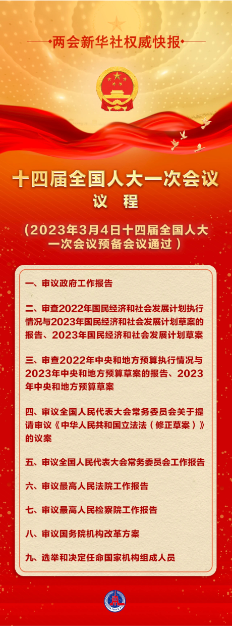 十四届全国人大一次会议4日上午举行预备会议,通过了大会议程。