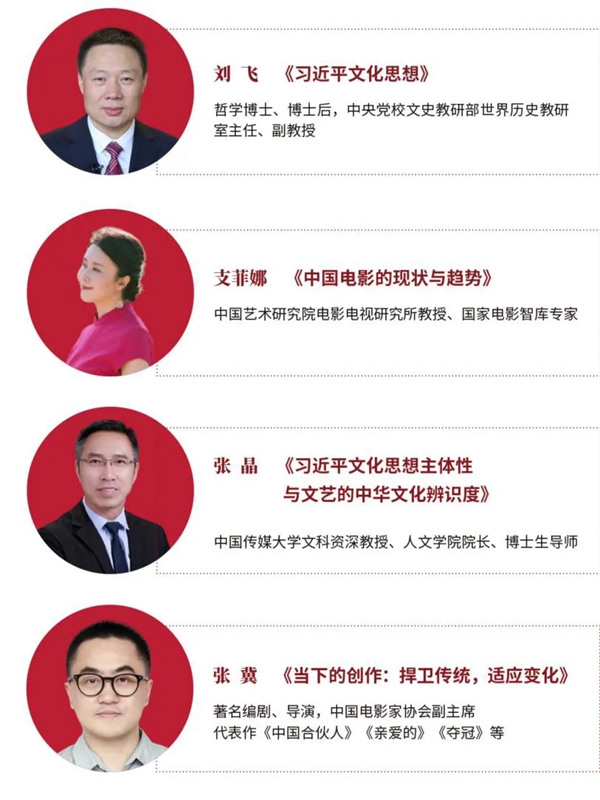 本次培训班特别邀请中央党校文史教研部世界历史教研室主任刘飞,中国艺术研究院电影电视研究所教授、国家电影智库专家支菲娜,中国传媒大学人文学院院长、博士生导师张晶,中国电影家协会副主席、著名电影编剧、导演张冀等政治理论和电影行业内的资深专家学者,从习近平文化思想、文艺的中华文化辨识度、中国电影票房档期变化与分析、电影现实主义创作等几个方面集中解读国家的方针政策,解析电影行业现状与趋势,帮助电影工作者提升政治素养、职业素养和业务能力,坚定广大电影工作者推动电影事业发展的信心。本次培训班结业仪式由中国文联电影艺术中心副主任张慧芹致辞。