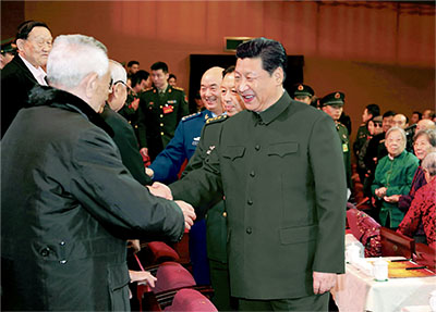 中华民族传统节日羊年春节到来前夕,为民族独立和解放建立卓越功勋、为国防和军队现代化建设作出突出贡献的驻京部队老干部欢聚一堂。回顾过去的一年,大家深切感到,在党中央、习主席坚强领导下,中央军委加强军事战略指导,召开全军政治工作会议,研究论证深化国防和军队改革,推进整风肃纪反腐,军队建设取得显著成绩。大家一致表示,在新的一年里,要深入学习贯彻习近平总书记系列重要讲话精神,深入学习贯彻习主席国防和军队建设重要论述,围绕实现党在新形势下的强军目标,锐意进取、扎实苦干,努力开创强军兴军新局面。