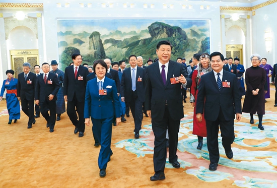 在新的奋斗征程上,必须充分发挥人民代表大会制度的根本政治制度作用,继续通过人民代表大会制度牢牢把国家和民族前途命运掌握在人民手中。这是时代赋予我们的光荣任务。