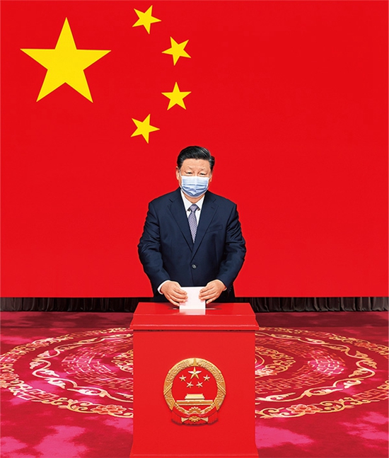 2021年11月5日,中共中央总书记、国家主席、中央军委主席习近平在北京市西城区中南海选区怀仁堂投票站参加区人大代表选举投票。 新华社记者 鞠鹏/摄