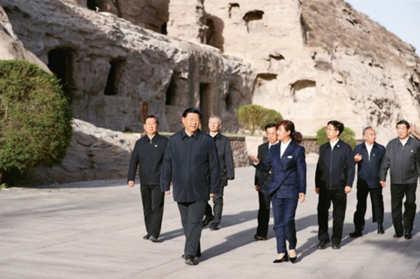 2020年5月11日至12日,中共中央总书记、国家主席、中央军委主席习近平在山西考察。这是5月11日下午,习近平在大同市云冈石窟考察历史文化遗产保护情况。 新华社记者 刘彬/摄