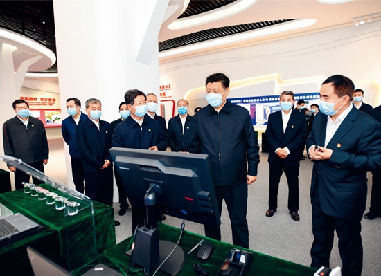2020年5月11日至12日,中共中央总书记、国家主席、中央军委主席习近平在山西考察。这是5月12日上午,习近平在山西转型综合改革示范区政务服务中心,了解示范区改革创新发展情况。 新华社记者 谢环驰/摄